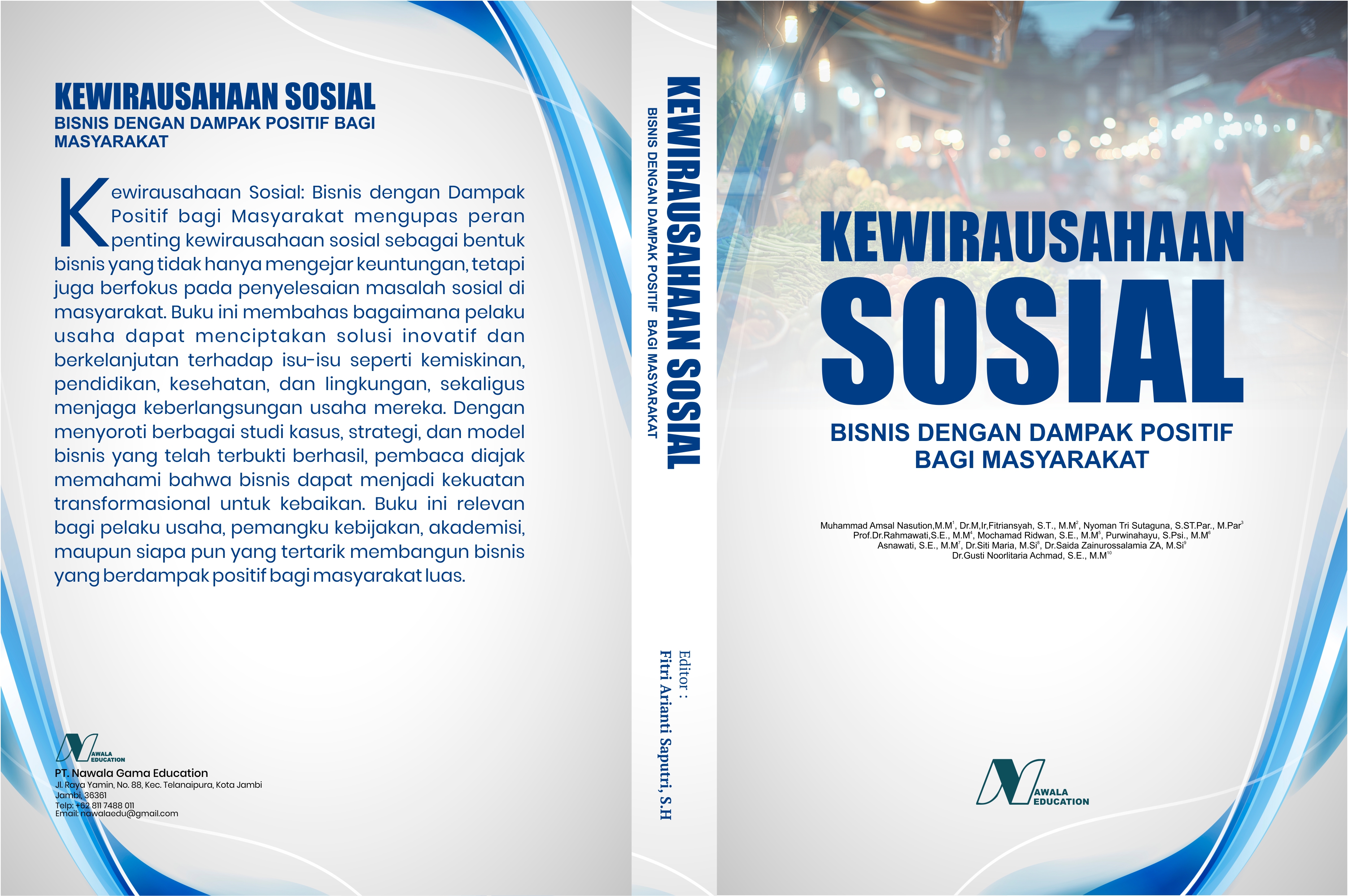 Kewirausahaan Sosial: Bisnis dengan dampak Positif bagi Masyarakat mengupas peran penting kewirausahaan sosial sebagai bentuk bisnis yang tidak hanya mengejar keuntungan, tetapi juga berfokus pada penyelesaian masalah sosial di masyarakat. Buku ini membahas bagaimana pelaku usaha dapat menciptakan solusi inovatif dan berkelanjutan terhadap isu-isu seperti kemiskinan, pendidikan, kesehatan, dan lingkungan, sekaligus menjaga keberlangsungan usaha mereka. Dengan menyoroti berbagai studi kasus, strategi, dan model bisnis yang telah terbukti berhasil, pembaca diajak memahami bahwa bisnis dapat menjadi kekuatan transformasional untuk kebaikan. Buku ini relevan bagi pelaku usaha, pemangku kebijakan, akademisi, maupun siapa pun yang tertarik membangun bisnis yang berdampak positif bagi masyarakat luas.